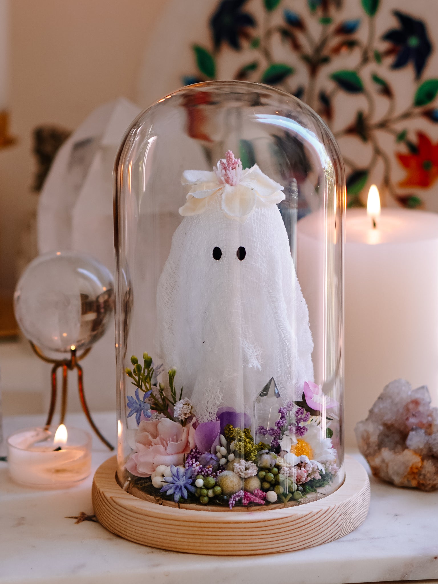 "May Queen" Ghostie In Glass Cloche